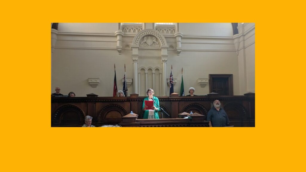 The Old Magistrates’ Court in Russell St Melbourne was the perfect venue for an outstanding book launch. The court was packed as Alana Kelsall launched Angela Costi’s new collection The Heart of the Advocate.