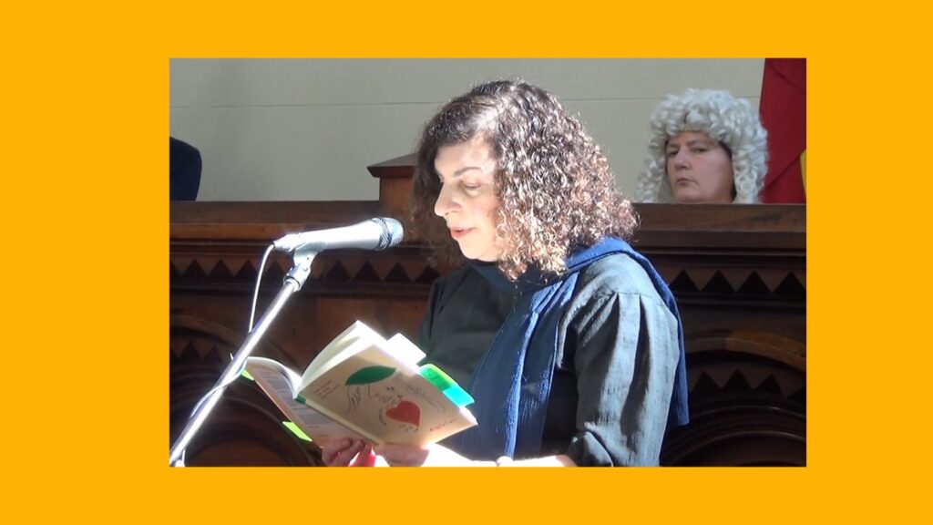 WATCH AND LISTEN As Angela reads her poetry and Nick Tsiavos responds on double bass – a joint performance that had the court spell-bound. Filmed at the event by Colin Hodson.
