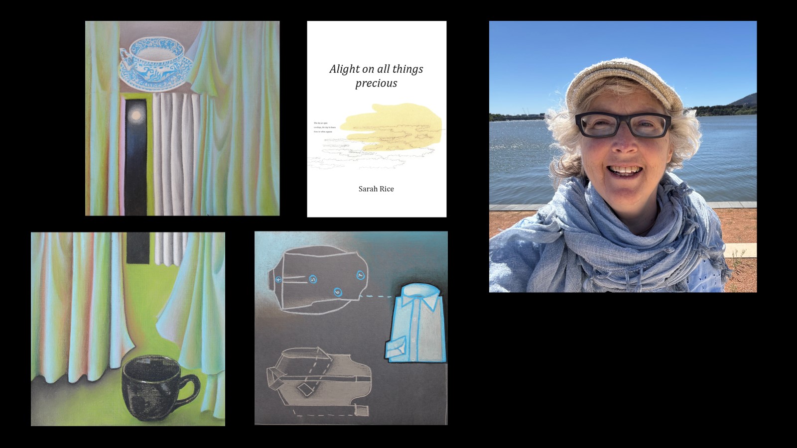 Alight on all things precious is the latest collection by poet-artist Sarah Rice, weaving together ekphrastic poetry and luminous colour reproductions of both her own and others’ artwork.